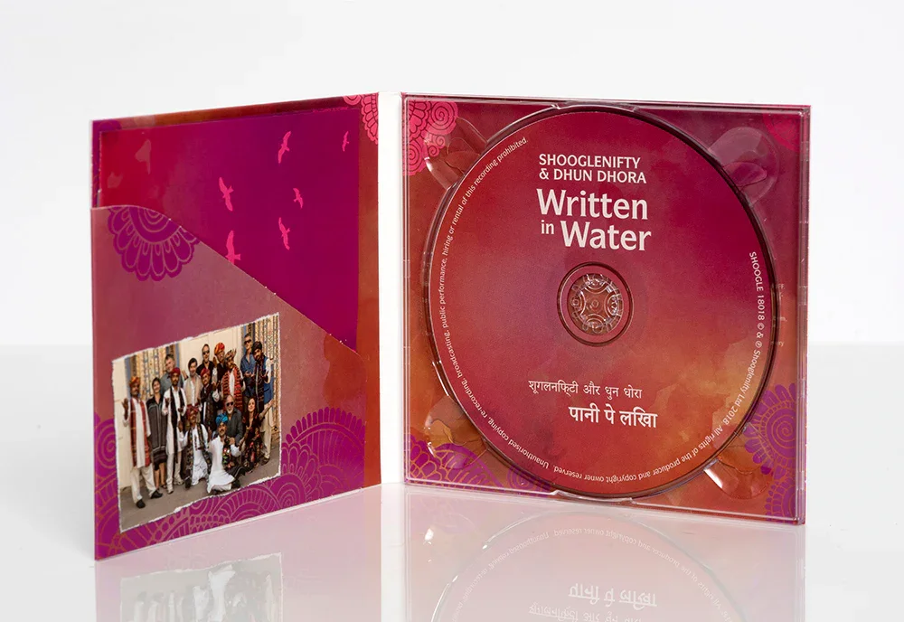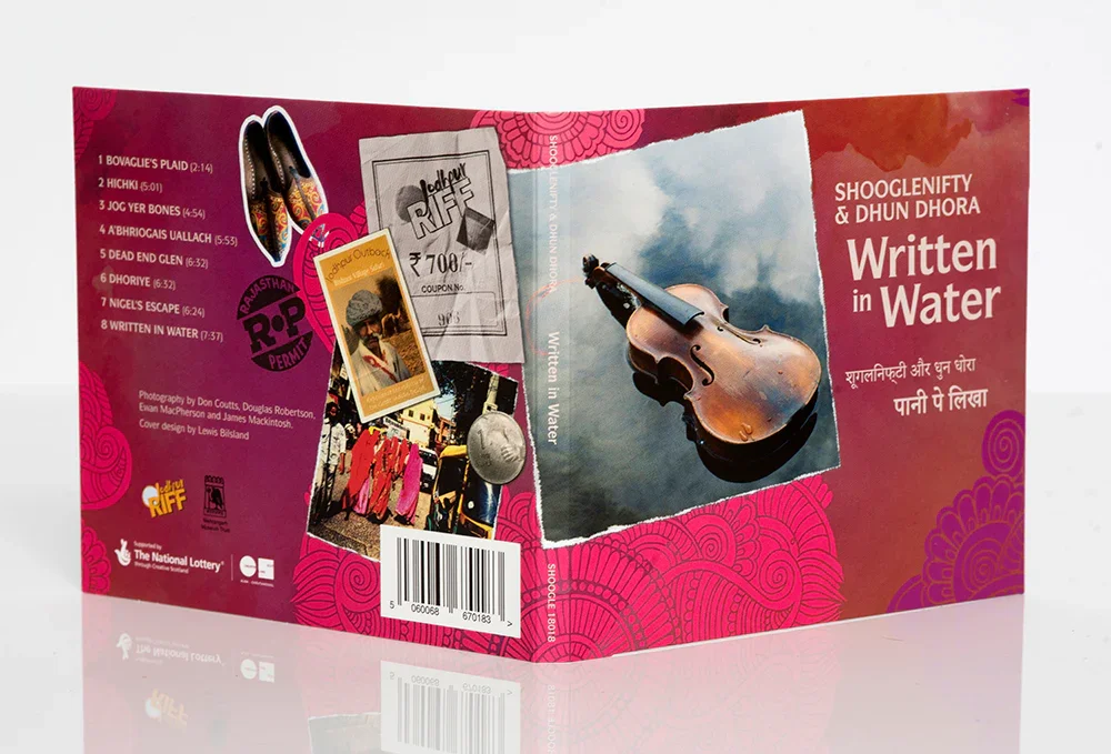 Shooglenifty's eighth studio release is very special as it is a collaboration with Rajasthani supergroup Dhun Dhora. The album was recorded in the Mehrangarh Fort, Jodhpur in September and October 2017. Written In Water is dedicated to the band's late fiddler Angus R Grant, and Dhun Dhora's dholak player Roshan Khan Manganiyar who passed away in February 2017. It features Laura Jane Wilkie on fiddle.